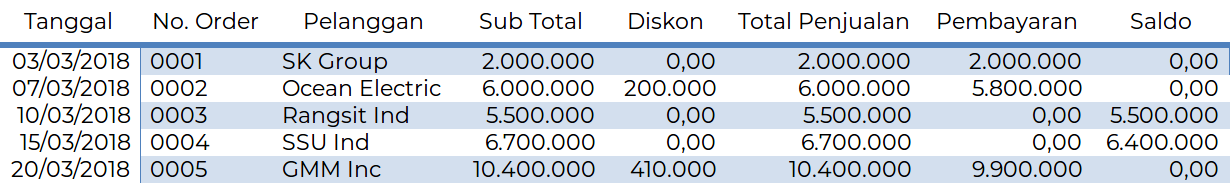 Jika di artikel-artikel sebelumnya kita sudah membahas mengenai jenis-jenis laporan keuangan, maka kali ini kita akan lebih fokus pada laporan penjualan pada perusahaan dagang. Mungkin anda sudah tahu dan paham perbedaan antara perusahaan jasa, dagang dan manufaktur. Perbedaan ketiga perusahaan ini tidak hanya terletak pada sistem operasional atau jenis usahanya saja. Lebih dari itu ketiga perusahaan ini juga memiliki perbedaan dalam penyajian laporan. Nah, apa yang dimaksud dengan laporan penjualan pada perusahaan dagang? Kita akan mengulasnya beserta contoh laporan penjualan pada ulasan kali ini.Laporan Penjualan Pada Perusahaan DagangSelain laporan keuangan lengkap, faktanya perusahaan dagang masih membutuhkan laporan lain yang menunjang kegiatan operasional perusahaan yaitu laporan penjualan. Laporan yang satu ini berisi kumpulan informasi kegiatan penjualan yang disajikan sebagai bahan catatan dan analisa penjualan. Perlu anda ketahui bahwa laporan penjualan memiliki peranan yang cukup penting dalam pengambilan keputusan oleh perusahaan, di mana keputusan yang diambil ini dalam bentuk pemasaran, harga dan metode penjualan.Mengingat laporan penjualan memiliki peran dan fungsi yang sangat penting, maka anda tidak boleh melakukan kesalahan dalam menyusunnya. Dengan kata lain anda harus benar-benar akurat dalam menyusun laporan penjualan ini. Nah, beberapa kegiatan penjualan yang perlu anda ketahui adalah analisa penjualan, penentuan harga, pemasaran produk, penawaran harga, pemesanan, pencatatan pelanggan, pengiriman barang, retur penjualan, penagihan pembayaran, penerimaan pembayaran dan terakhir pembuatan laporan penjualan.Kegiatan penjualan yang telah disebutkan di atas layaknya sebuah siklus yang saling berkaitan satu sama lainnya dan tidak bisa berdiri sendiri karena satu sama lain menyediakan data untuk kegiatan penjualan lainnya.Contoh Laporan Penjualan Pada Perusahaan DagangBerikut ini adalah contoh sederhana laporan penjualan pada perusahaan dagang yang perlu anda ketahui:PT. Gear SubLaporan PenjualanPer 31 Maret 2018
